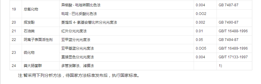 本標準規定的項目標準值,要求水樣采集后自然沉降30分鐘,取上層非沉降部分按規定方法進行分析。