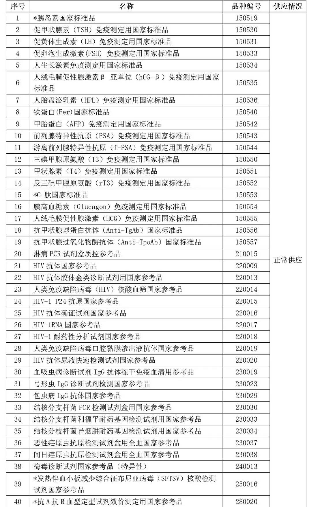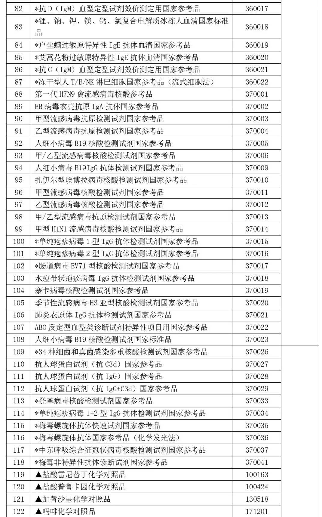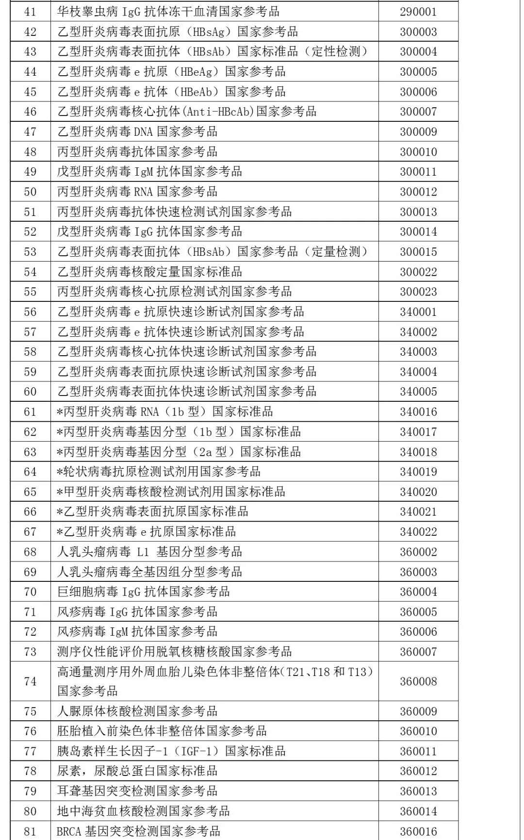 1. *標識品種為本期目錄新增體外診斷試劑標準物質。